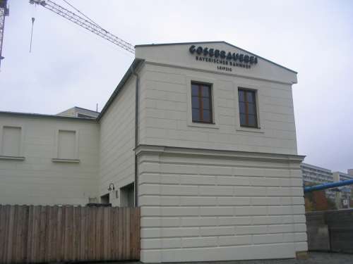 V Bavorské nádražní hospodě tedy nejsme, ale na nádraží ano. V okolní panelové pustině vyčnívají tak trochu jako pěst na oko hezké jako zázrakem dochovalé nepřehlednutelné původní klasicistní budovy menšího koncového nádraží, které už dávno neslouží svému účelu. Na nástupišti sice stále staví S-bahn a nyní je současně i zahloubáván pod zem, ale výpravní budova je od roku 1999 sídlem malého pivovaru.