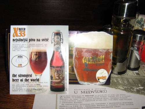 DOMÁCÍDost dlouho jsem kolem této známé a navštěvované restaurace chodil, aniž bych zavítal dovnitř, jako bych dopředu tušil, že se ocitnu v předražené turistické pasti a vlastně až vznik pivovárku před několika málo lety mě přiměl k návštěvě.Od té doby k medvídkům občas zavítám a názor jsem si poupravil. Restaurace a dnes už opět i pivovárek turistickým místem samozřejmě vzhledem ke své strategické poloze v centru Prahy a jisté vyjímečnosti jistě je, ale bylo by nespravedlivé toto místo jen kvůli tomu ignorovat. Oproti nedalekému dalšímu a tradičnímu pivnímu středobodu dění-pivovaru U Fleků, je U Medvídků přeci jen ještě pro čechy cenově relativně únosno a i nějací věrní štamgasti se najdou. Restaurace, dříve i vyhlášený šantán a do roku 1898 i pivovar, je na tomto místě v ústí ulice Na Perštýně do Národní třídy od nepaměti a patří vůbec k nejstarším místům s výčepem piva. Původně dům U černého medvěda byl jedním z mnoha staropražských pivovarů, kterých se ještě koncem 19.století uprostřed staré Prahy počítalo na desítky. Posledním majitelem fungujícího pivovaru byl jistý pan Karel Vendulák a podle výborné knížky Pražské pivovary a pivovárky od Milana Poláka, vystavoval pivovar ročně až do svého konce v roce 1898 na tehdejší dobu nezanedbatelných 4300 hektolitrů žaludečního piva. Nazývat takto v dnešní době pivo, by asi z marketingového hlediska nebylo nejšťastnější, ale toho času podobná přízviska běžně fungovala a to, že se uvedené množství piva vypilo prakticky jen v samotném pivovaru mluví za vše. Samotný pivovar se už nedočkal 20.století a přelom století znamenal i jistý přelom v pivovarnictví a v tom pražském zejména. Končila pomalu éra starých historických pivovárků, kterých bylo ještě koncem století nepočítaně, ale nového století se jich dočkala už jen hrstka. Malé pivovárky ustupovali silným, novým velkým průmyslovým pivovarům a i zmíněný majitel pivovaru U Medvídků se podílel na zrodu velkého pivovaru v Holešovicích, tehdejší průmyslové zóně za městem. Od té doby tedy fungovala už jen restaurace s vyhlášeným šantánem s prvním českým hudebním "Tingl tanglem"". Pivnice prošla během desetiletí několika rekonstrukcemi a i po té poslední v režii Budvaru se naštěstí respektoval jednoduchý klasický všeobjímající styl české hospody. Být to tak například v režii smíchovského světáka, asi by se medvídci vystěhovali do Troje a do domu na Perštýně by se nastěhovaly husy, zvláště ty potrefené a na místo české klasiky by vzniklo další líbivé vydesignované místo, které má všechno, jenom ne něco klasicky tradičně českého. Ve století jedenadvacátém vznikl dokonce i pivovarék, i když stěžejním pivem na čepu zůstává Budvar a místní piva jsou jen pouhým doplňkem a třešničkou na pivním dortu. Dnes už se prodejem patentních lahví přímo u vchodu nebo letáků na stolech, pro osvětu místních pivních speciálů dělá dost, narozdíl od doby v začátcích, kdy o existenci pivovárku nevěděl pomalu ani personál. V rámci přestavby celého objektu na dům piva vznikl novodobý kabaret nezvykle pod střechou, pěkný pivní obchod doplněný o různé propiety ze starých pivovarů, který by byl skvělý, kdyby měl trochu širší sortiment a byl v přízemí na očích a ne ukrytý v suterénu kam zabloudí málokdo. V onom suteréním labyrintu vznikl i pivovárek v řemeslném sympatickém starém stylu s chladícím štokem nebo dřevěnými ležáckými sudy. Posezení u varny s pěknou expozicí fotografií zaniklých várečných staropražských míst trpí na zastrčenost a tak jako v případě obchodu i sem si najde cestu bohužel mizivé procento návštěvníků restaurace a i obsluha funguje převážně jen pro objednané skupiny. Celý komplex, celkem výstižně nazvaný domem piva v sobě skrývá restauraci, pivní bar, kabaret, pivní obchůdek, pivovárek, malou letní zahrádku a pension. Má tedy co nabídnout i když to tak na první pohled z ulice nevypadá. V režii zkušeného sládka pana Veselého tady vzniká 13% polotmavý ležák Old Gott, chutné osobité nefiltrované pivo a hlavně nejsilnější české a údajně i světové pivo X-beer s obsahem alkoholu přes 11%, tedy asi třicítka. Upozornění "nikdy nepij sám", které je na lahvi, je více než výstižné a i když je alkohol v pivu velmi dobře schován a nepřebíjí plnou pivní chuť, tak je spíše pivním likérem na doma než pivem k popíjení v restauraci, pokud se tedy člověk hodlá vrátit domů v nějaké společensky přijatelné přeživší formě a vlastní silou. Naproti tomu 13% ležák by si točenou podobu v restauraci zasloužil, ale v nabídce je také bohužel pouze z 0,33 lahve . Ceny cca 50 Kč za 0,33 Old Gott a přes 100 Kč za X-beer se mohou někomu zdát vysoké, ale odpovídají jisté řemeslné exkluzivitě vzniku. Celkový velmi dobrý dojem z piva kazí jen jeho vyumělkovaně cize znějící názvy, které ostře kontrastují s poetickým názvem restaurace. V restauraci je na čepu jak vynikající černý ležák Budvar, který se opravdu podařil, tak i běžný 12% světlý ležák. Kroužkovaný Budvar je k dostání trochu nepochopitelně mimo hlavní restauraci, jen kdesi v zadním traktu. Co není v podobných turistických místech úplně obvyklé je tady fungující pohodová, hbitá a hlavně neselektující a solidní obsluha. Restauraci s pivovárkem U Medvídků tak nelze než doporučit, i když přeci jen spíše ve všední dny mimo hlavní turistickou sezonu, kdy najít v davech turistů volné místo může být nemalým oříškem.