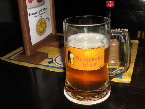 DOMÁCÍVlídný kraj Českého krasu, křivoklátských lesů a okolí Berounky je dnes především klidnou doménou turistů, ale ještě před pár desetiletími byl kraj především důležitým průmyslovým centrem.V nejrůznějších železárnách, vápenkách, dolech, strojírnách a dalších fabrikách byla velká žízeň a ta byla hlavní příčinou nebývale velkého počtu pivovarů na Berounsku. Malé dožívající řemeslné pivovárky a vedle toho na svou dobu moderně pojaté pivovary. Ještě v první polovině 20.století by se dala žízeň zahnat mimo jiné pivem Suchomastským, Jineckým, Cerhovickým, Křivoklátským, Liteňským, Švabínským a samozřejmě třeba taky Berounským. Z pivně přepestrého kraje bohužel do dnešní doby nezůstalo nic. Nejdéle fungující pivovar berounský, dovařil pivo v roce 1978 a poté už sloužil jen jako stáčírna a sklad plzeňského piva. V celé dříve pivovarnicky bohaté oblasti je dnes jen jedno místo, kde se pivo znovu vaří a tím je od roku 1998 pivovárek Berounský Medvěd manželů Mayerových, jinak majitelů i přilehlého kovošrotu a i bývalé krušovické sladovny v nedalekých Suchomastech. Malý pivovárek je sice jen slabým odvarem z dřívější bohaté okolní pivní pestrosti, ale díky za něj. Pokud někdo někdy vyhlásí mezinárodní soutěž o nejbizarněji umístěný pivovar, tak si berounští pojedou zaručeně pro medaile, protože jiné takové svérázné bizarní místo se v evropském měřítku najde jen těžko. Nové malé pivovary vznikají na nejrůznějších místech, ale Beroun se prostě všem standardům vymyká. Starý zdevastovaný cukrovar, dnes kovošrot s všudypřítomným bordelem na dvoře, velkou haldou odpadního dříví na otop na jedné straně a přístřešky se zaparkovanými vozidly bojové pěchoty na straně druhé. Betonový prašný apel plac s normálním provozem těžkých náklaďáků a uprostřed toho všeho světe div se, fungující pivovar. Jenom při vyslovení myšlenky na zřízení pivovaru v tak neutěšeném místě, by se asi kdejaký analytik jen zoufale chytil za hlavu, ale věci někdy fungují tak nějak mimo zaběhlá pravidla a několikaleté úspěšné fungování malého pivovaru v tomto ostrůvku nefalšovaného balkánu v jinak pěkném městě, je toho jasným příkladem. Spousta citlivějších osob v sobě asi nikdy nepřekoná psychologickou bariéru a návštěvu tohoto navenek nehostinného místa si rozmyslí už daleko před branou, ale je to škoda, protože v malé budově, dříve snad kotelně nebo strojovně, se ukrývá překvapivě pěkná pivovarská hospoda, kterou by mohl berounským závidět kdejaký zavedenější větší pivovar. Opravdu povedený, snad jen díky absenci větších oken trochu ponurý interiér restaurace zdobený pivovarskými lahvemi a starými smaltovanými cedulemi s celkovou patinou, díky níž to vypadá jako by zde byla hospoda odjakživa a ne jen několik málo let. Hlavní místnost s výčepem, šalanda v patře a bohužel hodně nuzně vypadající venkovní terasa a venkovní pódium na hudební akce. Asi by to nebyl správný majitel kovošrotu, kdyby do svého vznikajícího pivovárku kupoval novou mědí obloženou varnu. Vše je samozřejmě děláno podomácku z toho co kovošrot dal a výsledkem je fungující varna na přímý otop dřevem v samostatné místnosti vedle hospody. Práci kolem vaření piva i ruční stáčení do kegů a plastových lahví hravě zvládne jeden mladý šikovný sládek a že opravdu pivo vařit umí, jsem se už několikrát na místě osobně přesvědčil. I tentokrát nezklamal jak světlý nefiltrovaný pitelný 11% světlý ležák, tak ani tmavý 13% ležák s příjemnou lehkou hořkostí. Vaří se i další speciály, ale ty nejsou na čepu pravidelně. Zakoupit je možné kromě 1,5 litrových PET lahví i nějaký ten suvenýr, jako třeba hezký půlitr v retro stylu s logem piva Medvěd, převzatého ze starého berounského pivovaru, dárkovou patentní originální lahev, nebo sem tam nějakou lahev piva od konkurence, naposledy třeba Skalní ležák Chodovar v patentní lahvi. Výborné pivo doplňuje i velmi dobré jídlo za standardní ceny, které průvan v peněžence nezpůsobí a celkový příznivý dojem završuje i ochotná obsluha v podobě sympatické slečny odněkud ze severní Moravy. Původní plán stavit se jeden nedávný nedělní podvečer při cestě přes Beroun jen pro lahve, se díky venkovní bouřce a náhlému výpadku proudu nakonec změnil v příjemné posezení při svíčkách a točeném . Asi většina těch poučenějších pivařů už berounský pivní svéráz objevila. Těm, kteří ještě neměli tu čest, nezbývá než toto místo jen doporučit a nenechat se odradit prvním drsným dojmem u vstupu do ponurého areálu u vlakového nádraží. To že odvážlivců a příznivců dobrého piva přibývá, dokazuje nedávná nutnost rozšíření kapacity pivovárku, která už zvyšujícímu se zájmu přestávala stačit.