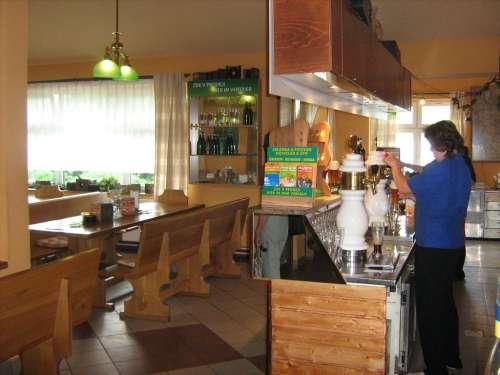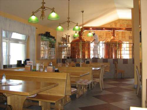 DOMÁCÍSympatické krkonošské městečko Harrachov žije hlavně zimní sezónou, kdy místní hotely, sjezdovky a hospody praskají ve švech a slyšet je namísto češtiny spíše ruština, polština a němčina. Osobně mám raději Harrachov letní.Ač zasněžené kopečky sjíždím na prkénku rád, tak zrovna harachovské předražené, úzké a přeplněné sjezdovky nechávám milerád tisícovkám turistů a Harrachov s okolím si vychutnám raději v létě, kdy je v městečku o poznání klidněji. Od roku 2002, kdy vznikl místní restaurační pivovárek, se kromě okolních přírodních krás nachází v městečku i zajímavé krásy pivní. Samotný Harrachov je jedním z mála míst v čechách, kde v historii nebyl nikdy pivovar a dnešní malý pivovar ve sklárně je tak místním prvním pivním průkopníkem. Byl to ostatně od majitele místní sklárny pana Novosada chytrý a prozíravý nápad, přistavět ke sklářské huti malý pivovar s restaurací. Slabý dolar a asijská levná konkurence už položila nejednu nejen českou na exportu závislou sklárnu a krize celého evropského sklářského odvětví zastavila většinu malých skláren. Ta harrachovská je jednou s posledních malých ručních, kde se ještě pořád daří udržovat výrobu. Nemalou míru na rentabilitě a zachování místního sklářského provozu tak má před pár lety vzniklá restaurace, hotel, malý pivovar a naposledy i pivní lázně. V trochu neforemné budově přistavěné přímo k boku sklářské huti je netypicky v 1.patře umístněna restaurace s varnou. V patře proto, aby byla využita atraktivní prosklená stěna s vchodem na ochoz, který nabízí zajímavý pohled do haly funkční sklářské huti a umožnuje pozorovat místní sklářské mistry v akci. Příjemná restaurace s měděnou varnou v rohu u oken, doplněná o milé detaily v podobě například sladu v miskách určeného k uzobávání při popíjení piva. I když je Harrachov mimo hlavní zimní měsíce vcelku vylidněným místem, samotná pivovarská restaurace o zákazníky nouzi nemá, protože zájezdy turistů mířící do sklárny se potřebují po exkurzi v horkém provozu sklárny pochopitelně i občerstvit a pivně osvěžit. Restaurace, kde nás jedno sobotní poledne sedělo jen pár, se tak v krátkém okamžiku kompletně zaplnila polským zájezdem a jinak vstřícný personál měl najednou problém uspokojit lavinu objednávek. Na turisty je zde sice zacíleno, ceny se drží na sice trochu vyšších, ale pořád ještě přijatelných mezích. Trefili jsme zrovna probíhající várku a tak pozorování práce šikovného mladého sládka, ve vařícím se pivem provoněné restauraci završilo celkový příjemný dojem. V nabídce je z krkonošské vody vařený 12% světlý nefiltrovaný, opravdu výborný ležák František a neméně dobrý příjemně hořký tmavý 12% Čerťák. I v rámci nefiltrované malopivovarské české produkce, se jedná bez přehánění o extraligu. V plastových 0,7l lahvích se kromě zmíněných piv prodává i 8% světlé Huťské výčepní pivo, které se jinak vaří především pro osvěžení sklářů pracujících u rožhavených pecí. Menší velikostí plastových lahví by se mohli inspirovat i jiné malé pivovárky, protože obvyklé rozšířené 1,5 litrové plastové lahve nejsou zrovna nejpraktičtější záležitostí při chuti zakoupit větší počet vzorků různých piv, pokud tedy kupující zrovna nehodlá pořádat domácí pivní slavnosti. Ač ve sklárně, tak lahvové pivo je paradoxně v plastu, ale i nějakou tu originální na místě vyrobenou patentní lahev nebo originální zelený půlitr je možné zakoupit. Skleněné jsou mimo jiné i třeba pivní tácky. Součástí komplexu je cenově přijatelný hotel a nově i pivní lázně, které sice díky plastovým vanám a umístění v moderní budově, jaksi postrádají řemeslný fortelný duch jako v pivolázeňsky průkopnické Chodové Plané, ale svůj účel plní. Osobně jsem ještě pivní lázeňskou kůru nevyzkoušel, ale podle všeho to bude něco, co by zvlášť ve spojení s místním přírodním nefiltrovaným pivem a zdravým horským harrachovským vzduchem, měla zdravotní pojišťovna zákonně proplácet. Do Harrachova tedy rozhodně ano, ale než v zimě na přeplněné svahy, tak raději v létě s batohem, nebo kolmo, ale hlavně nevynechat místní výborné sklářské pivo. S Františkem nebo Čerťákem je možné se potkat právě jenom tady.