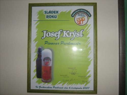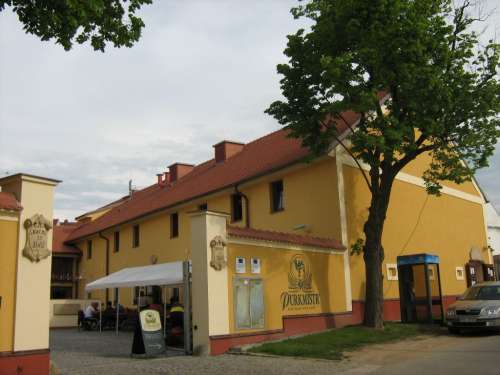 Součástí nákladně rekonstruovaného dvora je i čtyřhvězdičkový hotel, který cílí na někoho jiného, něž na průměrně vydělávajícího našince, ale to už je koneckonců na majiteli a jeho preferencích. Cenově rozumný penzion pro běžného nocležníka chybí nejen tady, ale i na mnohých jiných českých pivovarských místech. Že už si pivovar Purkmistr za poměrně krátkou dobu existence našel své pevné místo na pivní mapě dokládá i tabule cti s fotkami různých důležitých návštěv a hlavně pivních diplomů s několika oceněními. Ceny piva v restauraci (0,3l za 17,-Kč a 0,5l za 25,-Kč) jsou kupodivu více než příznivé a tady už se investice do pivovaru prostřednictvím několika druhů piva zhodnocuje. Místní zkušený sládek pan Krýsl, který přestoupil po dlouhých letech v Prazdroji na druhou na stranu barikády a věnuje se stavění pivních manufaktur, své řemeslo ovládá a piva Purkmistr i zmlsané jazýčky pivních fajnšmekrů potěší. Jediné, co mně z celkem pestrého sortimentu piv moc neoslovilo, bylo kupodivu nejdražší (0,3 za 19,-Kč a 0,5 za 28,-Kč) a poněkud uměle-limonádově chutnající borůvkové pivo.