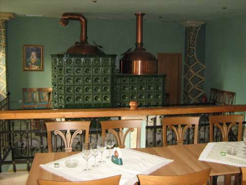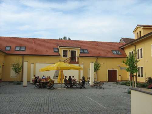 Bohužel vstupem do budovy první navenek příznivý dojem povadá. Mimo štěrkem zasypaného dvorku o pár stolech, kde jsem se usadil i já, je součástí domu ještě trochu studeně působící, strohá přízemní hospoda-pivnice a netypicky v 1. patře pak samotná restaurace s varnou.