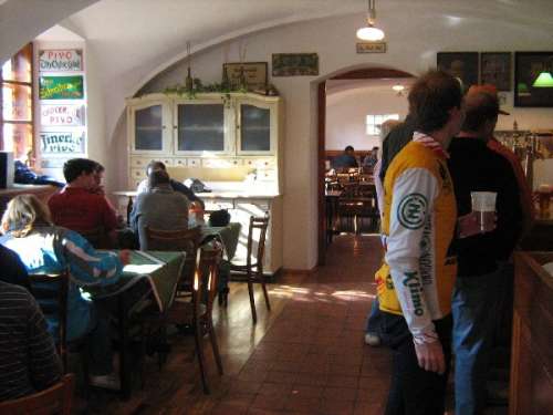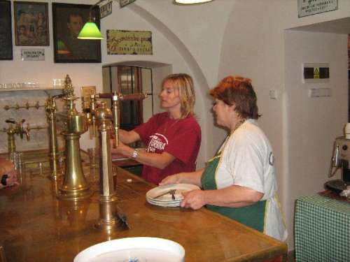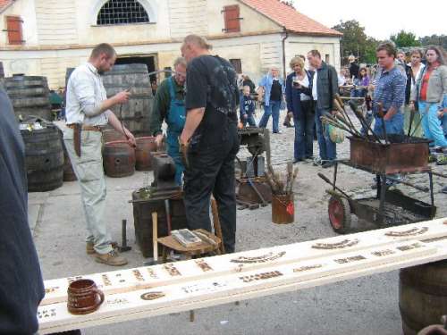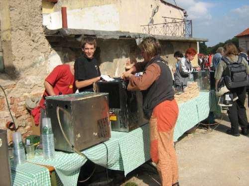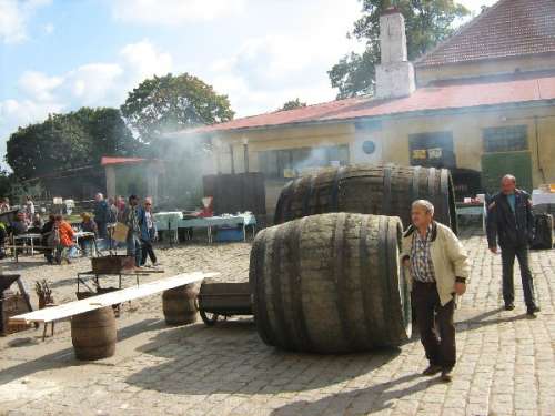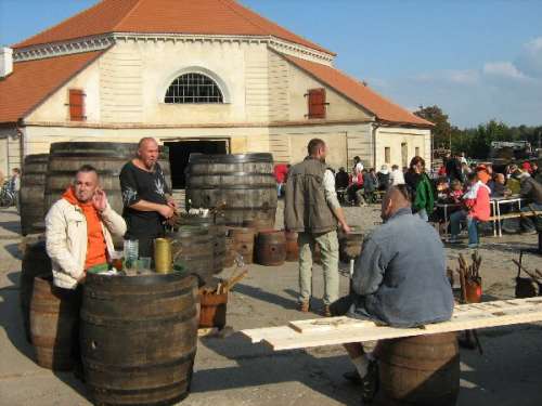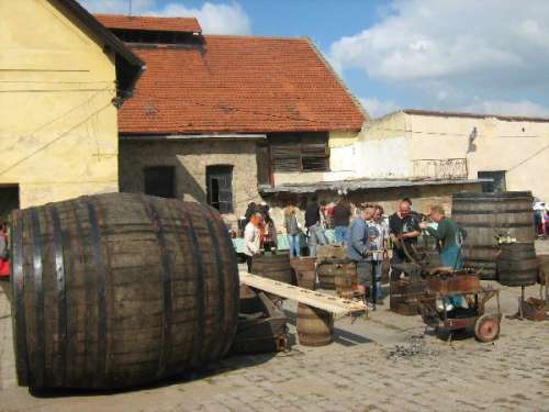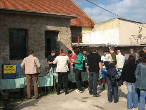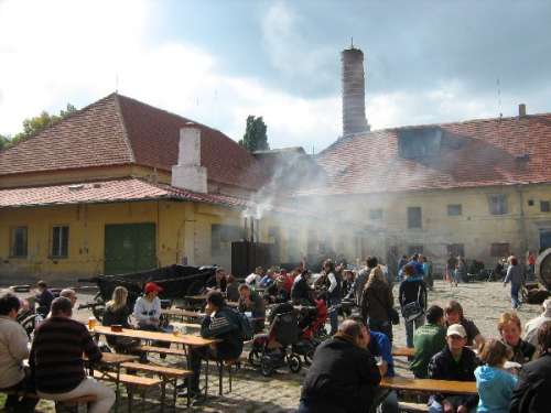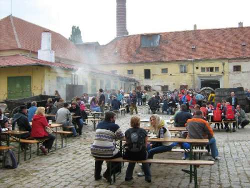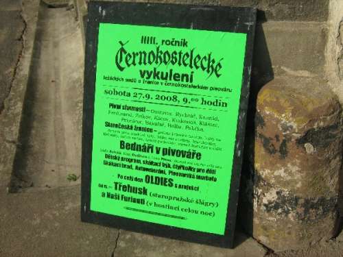 DOMÁCÍPůvodní pivo, kterého se v černokosteleckém pivovaru dříve vařilo ročně i přes 50000 hl. osobně už nepamatuji. První a zároveň i poslední můj kontakt s ještě fungujícím pivovarem proběhnul někdy v roce 1991, kdy na mojí sběratelskou prosbu o pivní etikety přišla odpověď s balíčkem starých etiket přímo od pana vedoucího kostelecké provozovny.Pivovar v té době už vlastní pivo nevařil, proto už své etikety nepoužíval a jen ležácké sklepy ještě sloužili k dozrávání velkopopovického piva. Originálního piva z Kostelce se snad znovu dočkáme, i když nejdříve asi až v příští pětiletce. Oprava schátralého pivovaru postupuje v režii pivovarských nadšenců kolem p.Starce a Vodochodského velmi zvolna, ale vzhledem k nemalým finančním investicím je to pochopitelné. Jejich sen o vlastním pivovaru ale určitě jednou dojde naplnění. První a zatím jen příležitostně fungující vlašťovkou je půvabná pivovarská hospůdka ve stylu 1.republiky, která okrášlená originálními starými pivovarskými cedulemi a původním historickým výčepem nadchne každého pivního staromilce. Černokostelečtí pivovarníci také patří k fandům pivovarské historie a objekt pivovaru je i depozitářem pivovarského vybavení z různých koutů republiky, které by jinak obohatilo nějakou tu sběrnu druhotných surovin. Na letošním vykulení ležáckých sudů aneb na pivní akci, která slibovala i možnou prohlídku pivovaru, jsem tedy nemohl chybět. Menší a o to sympatičtější, kouřem a vůní pečeného masa provoněná pivní slavnost, jak už je v Kostelci zvykem, nabídla poměrně široký výběr piva na čepu. V hospůdce jsem zaznamenal světlou kácovskou desítku, 13% polotmavého Primátora a 11% světlou hanušovickou Holbu. U venkovních výčepů pak byla na výběr další řada piv (nabídka se měnila podle vypitých sudů a tak došlo určitě i na další nezmíněné) od zmíněné Holby, přes světlého Krakonoše, tmavého 12% Bakaláře, velmi dobrého zvíkovského pšeničného, vynikajícího šťavnatého 12% piva z Kácova, po úplnou novinku - kvasnicového a velmi dobrého Rampušáka z Dobrušky, jehož stvořitel, hlinecký sládek p.Vedra byl na akci přítomen. Čepování do nenostalgického plastu nepřekvapilo, ale k zakoupení byli i sklenice. Nejsa zběratelem pivních sklenic, tak nevím jaké jsou současné cenové relace, ale i když jsem nákup udělal, tak 80,-Kč za 0,3 l. obyčejnou lisovanou sklínku s logem mně přišlo trochu příliš. Pivo bylo ale za ceny přijatelné takřka lidové. Hlavní atrakcí byla samozřejmě parta posledních činných českých pivovarských bednářů z Plzně, která předváděla svoje umění a na prodej za cca 100,-Kč byli i prkénka s vypálenými znaky a logy starých pivovarů. Do příjemně nostalgicky pojaté akce, která krom bednářů nabídla i jízdu automobilových veteránů moc nezapadl pouťový nafukovací hrad pro děti, který se ale ještě dal vzhledem k počtu přítomných ratolestí pochopit. Co už bylo trochu mimo chápání a co je trochu nepochopitelně poslední dobou součástí pivních akcí celkem běžně, je spojení pití piva a řízení motorových čtyřkolek. Řádění na motorových čtyřkolkách hned za stoly s popíjejícími bylo opravdu nápadem k nezaplacení. Nakonec snad naštěstí nikdo na svých zádech motorového oře nepocítil. V historické kruhové budově žentouru sloužící ve dnech slavností jako krytá hudební scéna, mlýnského to zařízení na zvířecí pohon, které by dnes u ochránců zvířat schválením asi neprošlo, se nás na prohlídku sešla početná skupinka a s milou paní, která dokázala o pivovaru dlouze povídat jsme se vydali na průzkum. Z pivovaru se po ukončení vaření piva jako zázrakem nestalo pro naše spoluobčany naleziště železných kovů a tak je většina zařízení zachována, včetně třeba dnes už v pivovarech nepoužívaných štoků - rozměrných železných van na chlazení horké mladiny, které už v pivovarech dávno vystřídali moderní vířivé kádě. Dvounádobová letitým prachem pokrytá původní varna z 30. let 20.století bude znovu repasována a opět bude snad sloužit svému účelu o čemž svědčí už zrenovované blyštící se scezovací korýtko. Zařízení minipivovaru složené někde v pivovaře tak prý použito nebude a dojde k obnovení původního zařízení. Rekonstrukcí tak prý projdou i zachovalé betonové spilky nebo opravovaný parní stroj. Trochu dobrodružná prohlídka prachem pokrytým pivovarem, které se kromě nás pivních nadšenců i majitelů přítomných veteránů zúčastnil i pivní příznivec a ochotnický herec, středočeský hejtman p.Bendl, skončila v temných ležáckých sklepích, kde odněkud dovezené dřevěné sudy a ocelové tančíky čekají na svou příležitost. Je v tom černokosteleckém pivováře ještě práce jak na kostele a tak na první várku piva si ještě dlouho počkáme. Příjemná pivovarská hospůdka by se už ale po několika odkladech měla během podzimu trvale otevřít. Jestli si do ní na okraj městečka najdou místní pivaři cestu i ve všední dny a dají tak přednost zajímavým pivům před pivům z TV reklamy přítomných ve všech dalších místních podnicích, tak zůstává otázkou. Letošní už tradiční vykulení bylo příjemnou a i nevšední pivní akcí, která se opravdu vydařila a díky výběru piva, zajímavému programu i místu konání se tak alespoň pro mne zařadila mezi ty na která se jen tak nezapomíná.