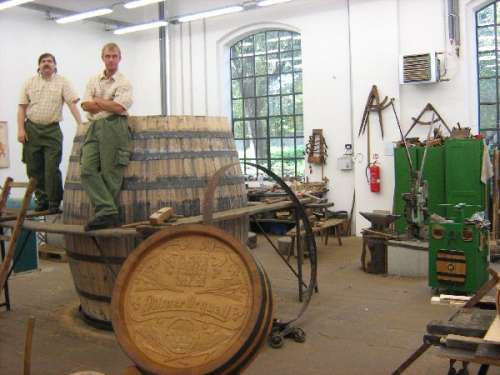 DOMÁCÍJe to v čechách trochu paradox, ale když už se v čechách mladší ročník rozhodne uzřít na vlastní oči tradiční zrání piva ve dřevě a poznat jedno zaniklé řemeslo, které jinak nemůže pamatovat, musí zamířit ne do nějakého malého pivovaru, ale do toho největšího. Zrání piva v dřevěných spilkách a sudech či poslední fungující čeští pivní bednáři jsou k vidění už jen v plzeňském Prazdroji.Jednou z příležitostí, kdy je možné si nejen přečíst podnikový časopis Za Branou, ale za samotnou krásnou historickou bránu se i vydat, je každoroční Pilsner Fest, konající se tradičně první týden v říjnu v době, kdy se v Plzni slaví výročí první várky uvařeného Pilsu, sládkem Josefem Grollem s bavorského Vilshofenu. Speciální prohlídka pivovaru až na exkurzi v bednářské dílně, kam se každodenní prohlídky nevodí, mnoho dalšího nenabídla a tak když už na prohlídku do Prazdroje, tak raději mimo festival kterýkoliv den v určené hodiny, kdy prohlídka vede kromě starých sklepů přes novou i starou varnu, CK tanky a stáčírny. Parta sedmi posledních plzeňských bednářů má na starosti údržbu dřevěných sudů, výrobu nových a i výrobu různých malých dekorativních soudků. Těžká a v podstatě už zmizelá profese, která byla součástí každého pivovaru, není rozhodně jen obyčejnou truhlařinou. Zajímavé je, že na moravě fungující bednáři vyrábějící sudy na víno prý nedokáží vyrobit sud pivní, ale ti plzenští sud vinný ano. Výroba pivního sudu je totiž mnohem náročnější, ať už nutností použít tvrdé dubové dřevo (sudy na víno se mohou vyrábět i z měkčích dřev), tak hlavně nutností sudy vysmolovat. U piva českého typu není narozdíl od vína žádoucí styk tekutiny se dřevem. Kutálet a manipulovat s takovým 40 hektolitrovým a cca 500 kilo těžkým sudem, aby se horká smola dobře rozprostřela uvnitř celého sudu, není rozhodně snadná a bezpečná záležitost. Výroba velkého 40hl. sudu trvá i měsíc, sud má sice životnost i 100 let, ale přijde bratru až na 1 milion korun, takže nějaký hromadný návrat dubových sudů do sklepů pivovarů už dnes opravdu nehrozí. Při přesunu autobusem se zatemnělými skly z bednárny do sklepů jsme se od mladého průvodce dozvěděli něco z historie a o úspěších Prazdroje (informace o výrobě Prazdroje v Polsku či Rusku byla pro něho úplně novou informací). O sousedním pivovaru Gambrinus se průvodce překvapivě nevyjadřoval zrovna pozitivně a ani turisté se do samostatně fungujícího pivovaru nevodí (to se má ale prý brzy změnit a po nutných opravách, budou mít turisté z různých končin světa příležitost vidět na vlastní oči i rychlo výrobu nejprodávanějšího českého piva). Tabulky se zákazem focení v areálu mimo stanovená místa, tak jako u kasáren socialistických obránců míru, mají asi nejspíš za úkol ochránit podnik před vyzrazením tajemství výroby někam do číny a vzniku nějakých padělků. Jinak si tento nesmysl nedokáži vysvětlit. Za lidových 100,-Kč si je možné zakoupit povolení k focení (platí i v pivovarském muzeu) a tak jde třeba u zájezdů všechnosifotících japonců o zajímavý byznys na přilepšenou. I když jsem spíše zastáncem tradic, tak chápu že udržovat v provozu neuvěřitelné množství dřevěných sudů (v 9 kilometrů dlouhém pískovcovém sklepním labyrintu) by už v dnešní době nebylo možné ufinancovat a technicky zvládat. Tak rozsáhlé sklepní hospodářství ve dřevě, které bylo až do začátku 90.let v podobně velkém pivovaru celosvětovým unikátem, dokázalo přežít snad jen díky socialistickému přerozdělování, kdy se náklady na provoz moc nehlídali a hlavně peníze na investice šli do exportního podniku přednostně na úkor neúdržby a chátrání naprosté většiny dalších pivovarů. Škoda tradiční výroby, ale přechod na modernu byl s rostoucí výrobou a expanzí neodvratným krokem a tak desítky sklepmistrů, spilečných a bednářů vystřídala malá skupinka lidí obsluhující počítačem baterie vysokých CK tanků. Zanikla jedna výlučnost, ale je spravedlivé uznat, že v případě Prazdroje nezašli místní pivovarníci v úsporách za pomyslnou hranici jako v případě sousedního Gambrinusu. Prazdroj se vaří na stupňovitost (s 1 druhem piva odpadá jinde samozřejmé HGB ředění), na 3 rmuty (jako snad jediný v Čechách), z podzemní měkké vody (Gambrinus se donedávna vařil nebo ještě i vaří z upravené vody říční a městské), vlastního sladu a žateckého chmele. Kvašení probíhá v CK tancích, ale dvoufázově (jako třeba v Budvaru), kdy v jedněch CK tancích nahrazujících spilku probíhá hlavní kvašení a na dozrávání se používají tanky jiné (opět rozdíl oproti Gambrinusu, kde se vše zvládne v jedné nádobě a navíc ve zkrácené době). Výsledkem je výborné nefiltrované pivo, které je možné ochutnat například ve velmi pěkné restauraci Na Parkánu u plzeňského pivovarského muzea, nebo nefiltrované pivo dodávané do hospodských tankoven. Filtrací a následnou pasterizací chuťově ztratí každé pivo a ani exkluzivně se tvářící Prazdroj není vyjímkou. Prazdroj byl po celá desetiletí vždy dražším a exkluzivnějším pivem, které nemusí a ani nechce být všude. Bohužel až příliš expanzivní obchodní politika posledních let i současného vedení, navyšování objemů výroby, snaha být za každou cenu s pivem všude i v různých provozovnách, kde si o ideálních podmínkách čepování a skladování piva mohou nechat jen zdát, exkluzivní pivo rozhodně nedělá a exkluzivní je snad už jen vysoká cena. Licenční výroba v Polsku a Rusku, která Prazdroj (tak neodmyslitelně spjatý s m
